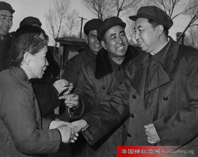 1977年4月19日,华国锋视察被誉为代表大庆精神的供应指挥部缝补厂,并翻看他们制作的工作服。